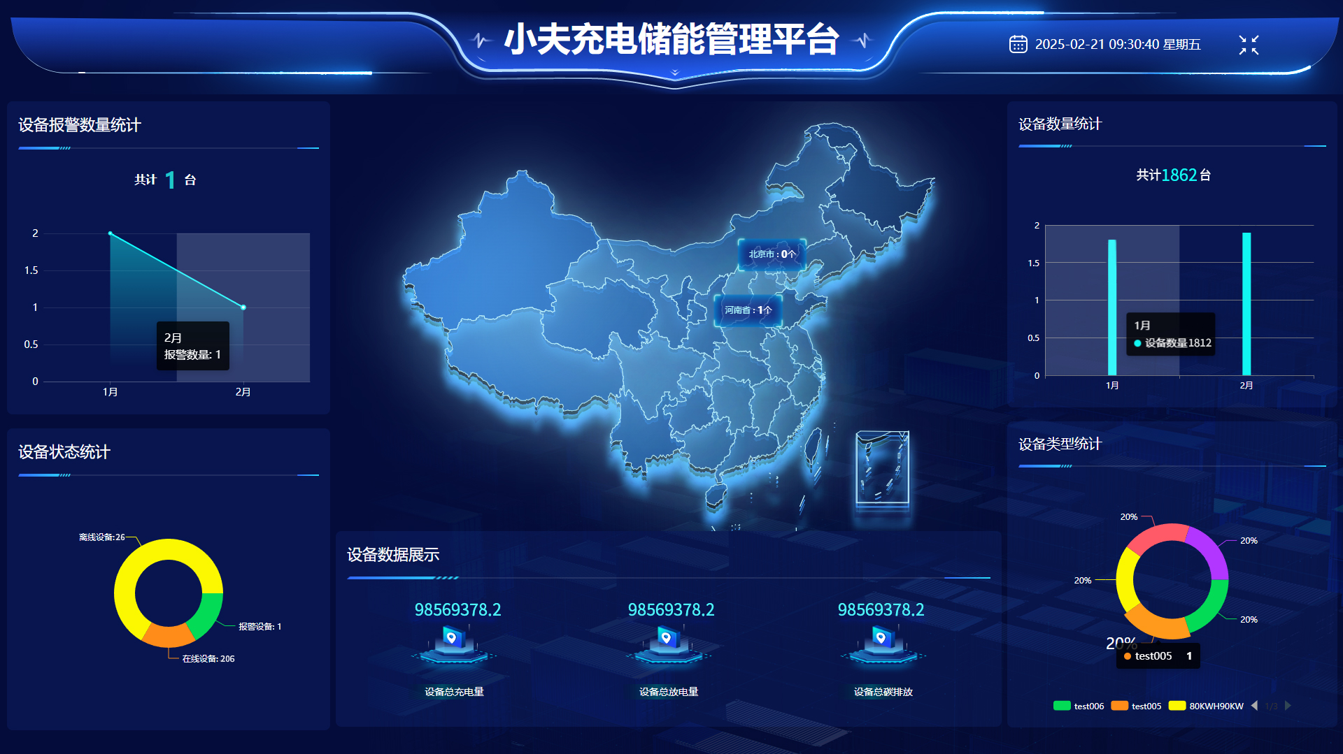 小夫充电全球大数据中心的核心功能在于“全链路数字化”,覆盖设备运行监测、能源调度优化、故障预警、用户服务、碳中和五大模块。通过预期部署超过10万台物联网终端设备,该中心可实时采集全球储能充电桩的电压、电流、温度、电池健康度等关键数据,并基于深度学习算法预测设备维护需求与能源供需波动,从而提升运营效率与用户体验。
